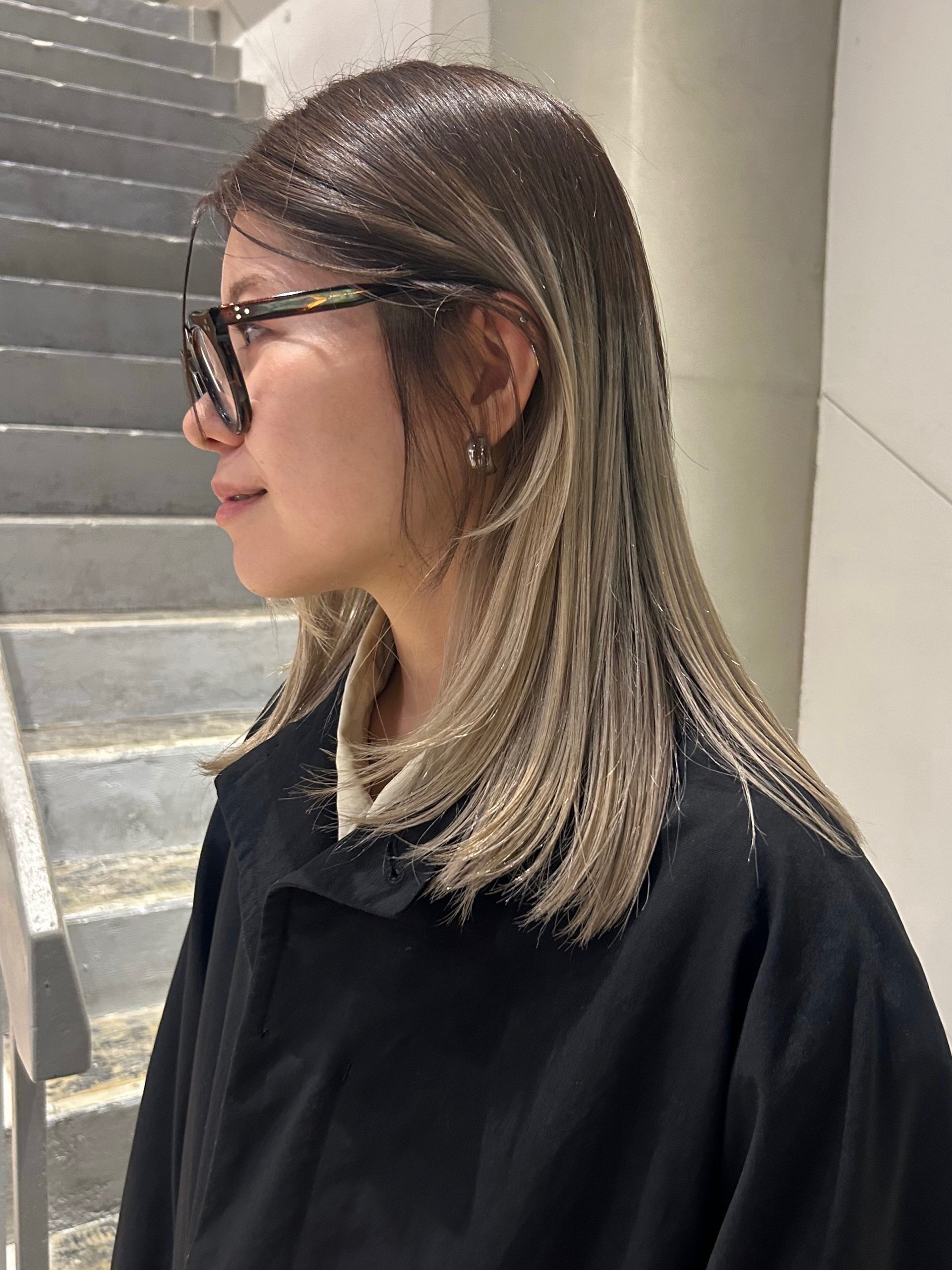 こちらは根元(伸びてきた新生毛の部分)にスモークブラウン、過去のブリーチ部分に